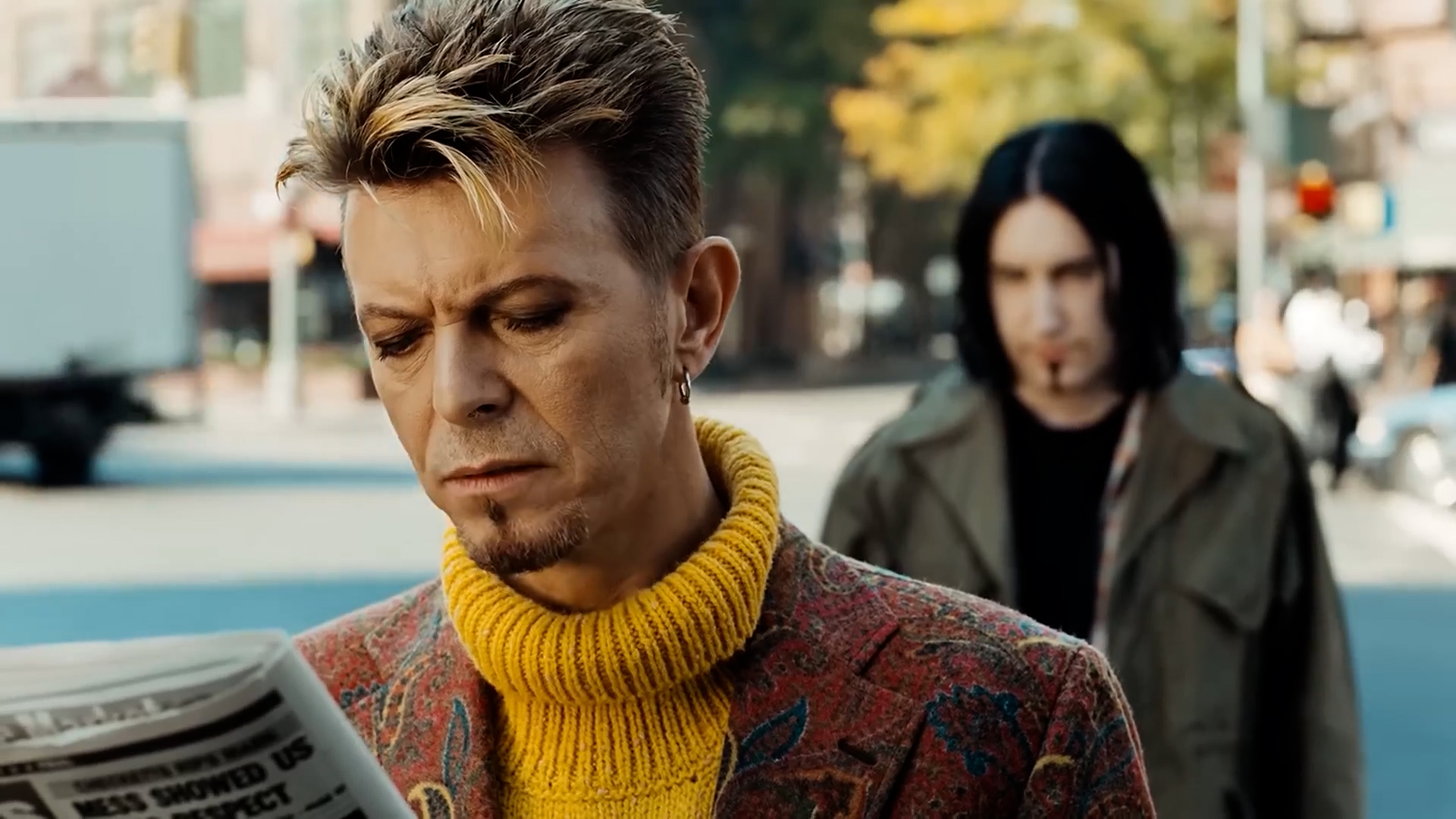 Concerned, Bowie rolls his newspaper tightly in his hands, no doubt hoping to use it to bludgeon his stalker if need be. But when it becomes clear this is no mere following, but something more sinister, he drops his makeshift weapon and breaks into a run.